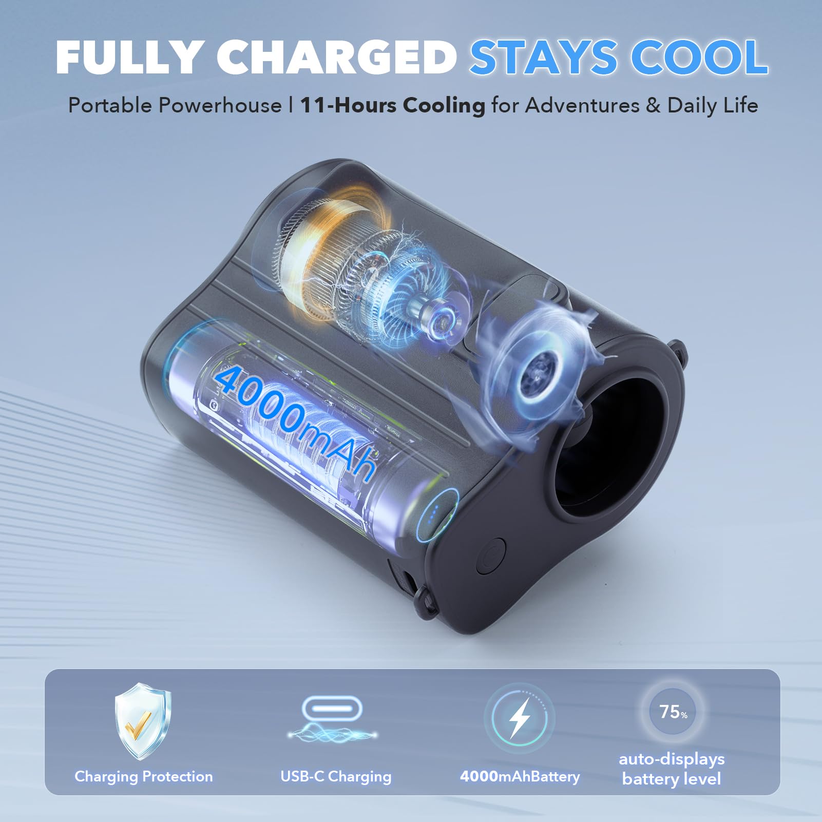 - 【LED Digital Display & Powerful Battery】Stay informed with the real-time LED display, showing battery life and fan speed. The 4,000mAh rechargeable battery provides all-day cooling comfort, with fast Type-C charging in just 2.5 hours. Enjoy up to 11 hours of runtime, whether you're working outdoors or relaxing indoors with this portable waist fan.