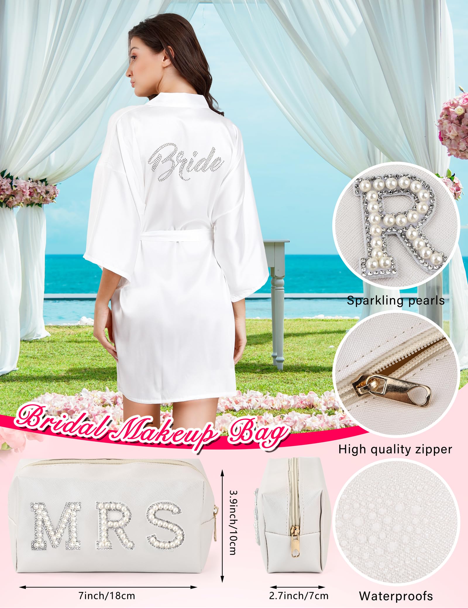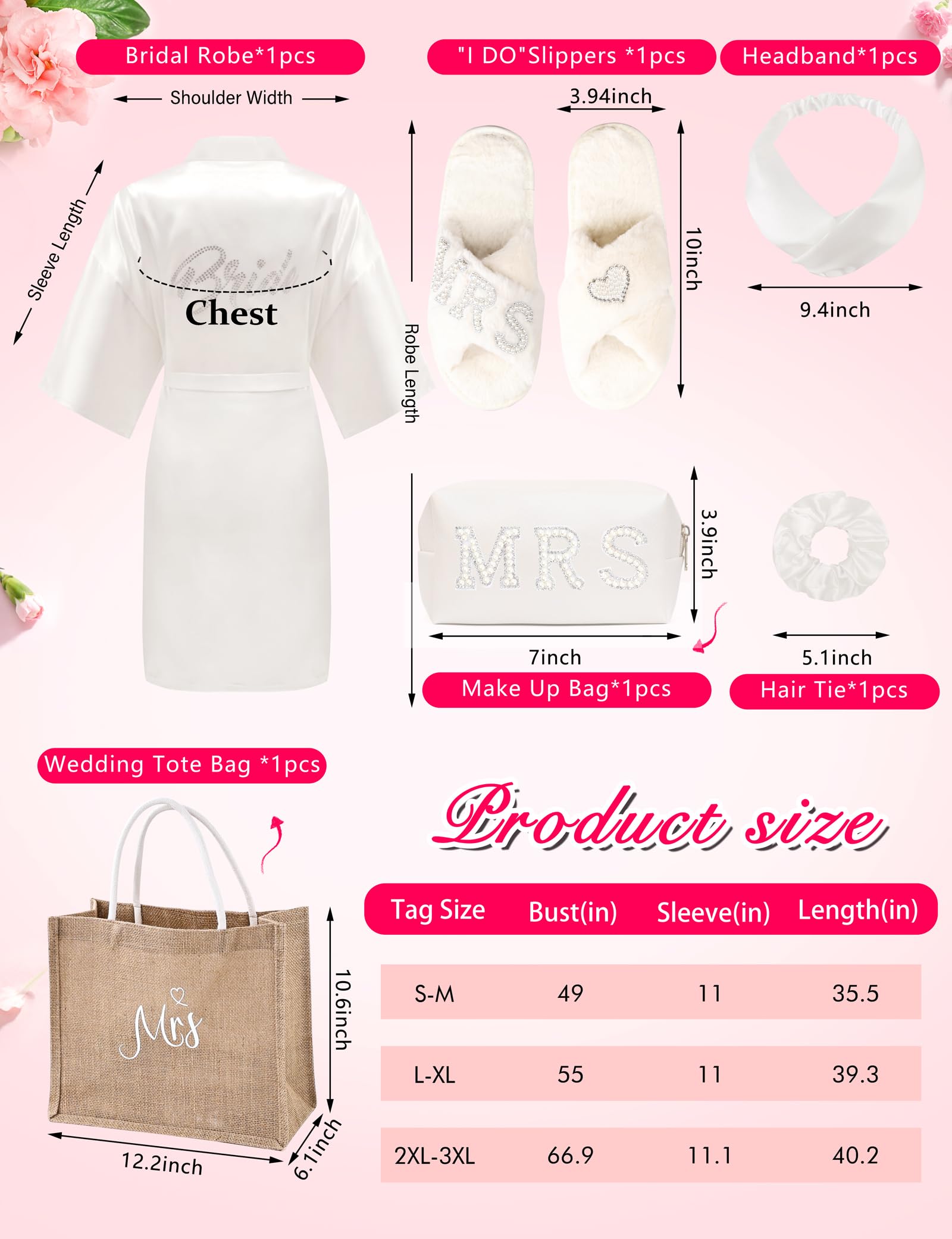 ALHAVONE 6 Pcs Women Bride Robe with Accessories for Bride Bachelorette Party Engagement Honeymoon Bridal Shower Gift (White, SM)