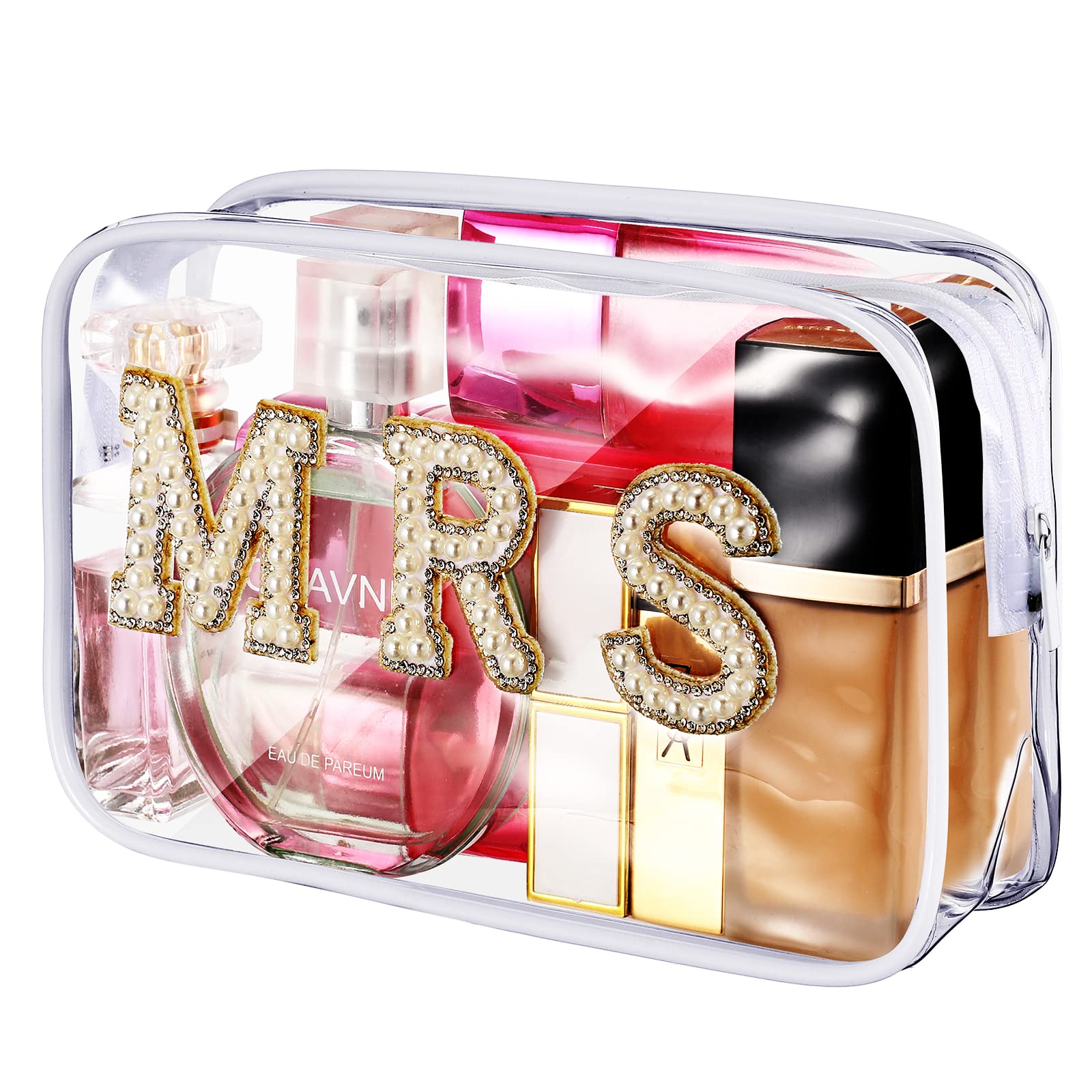 Bride Bag Clear Makeup Bag Bride Gift Cosmetic Bag Mrs Pearl Bags Bachelorette Toiletry Bag Wifey Makeup Pouch Rhinestone Letter PVC Cosmetics Bag Travel Case Wifey Purse Portable Bag(MRS Style)