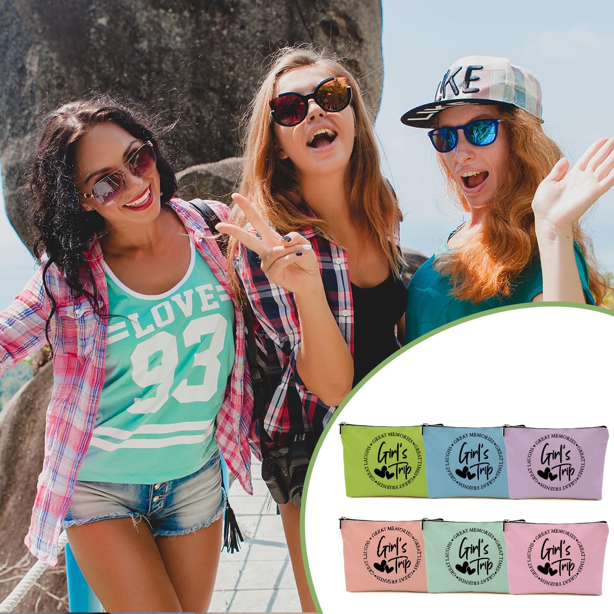DHKG 6Pcs Girls Trip Gifts Favors, Girls Weekend Gifts Makeup Bag, Bestie Gifts Weekend Bag Vacation 2025 Cosmetic Bag, Friendship Gifts for Women Bestie Friend, Graduation Wedding Gifts Toiletry Bag