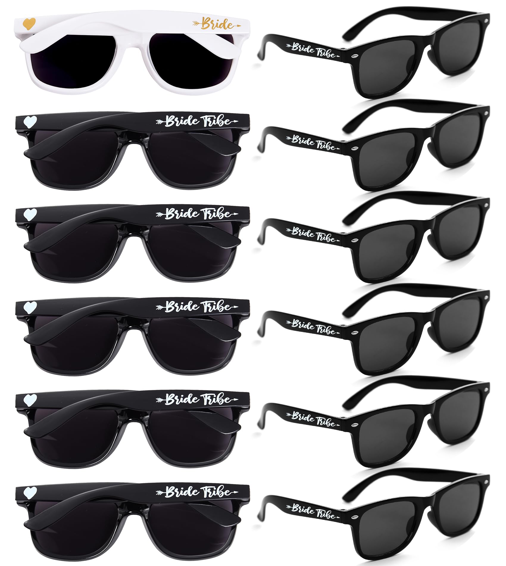 - Bachelorette Sunglasses:This bride sunglasses for bachelorette party kit contains a total of 1 pair of white Bride sunglasses and 11 pairs of black Bridesmaid sunglasses. Ideal for bachelorette parties, engagement celebrations, and wedding receptions.Create lasting memories with these must-have bachelorette party sunglasses that are sure to bring joy and style to your celebration!