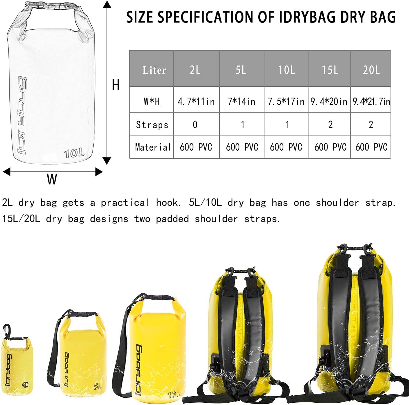 IDRYBAG Dry Bags for Kayaking Waterproof 2L/5L/10L/15L/20L, Small Dry Bag Waterproof Floating, Dry Sack Waterproof Bag for Paddleboarding Travel