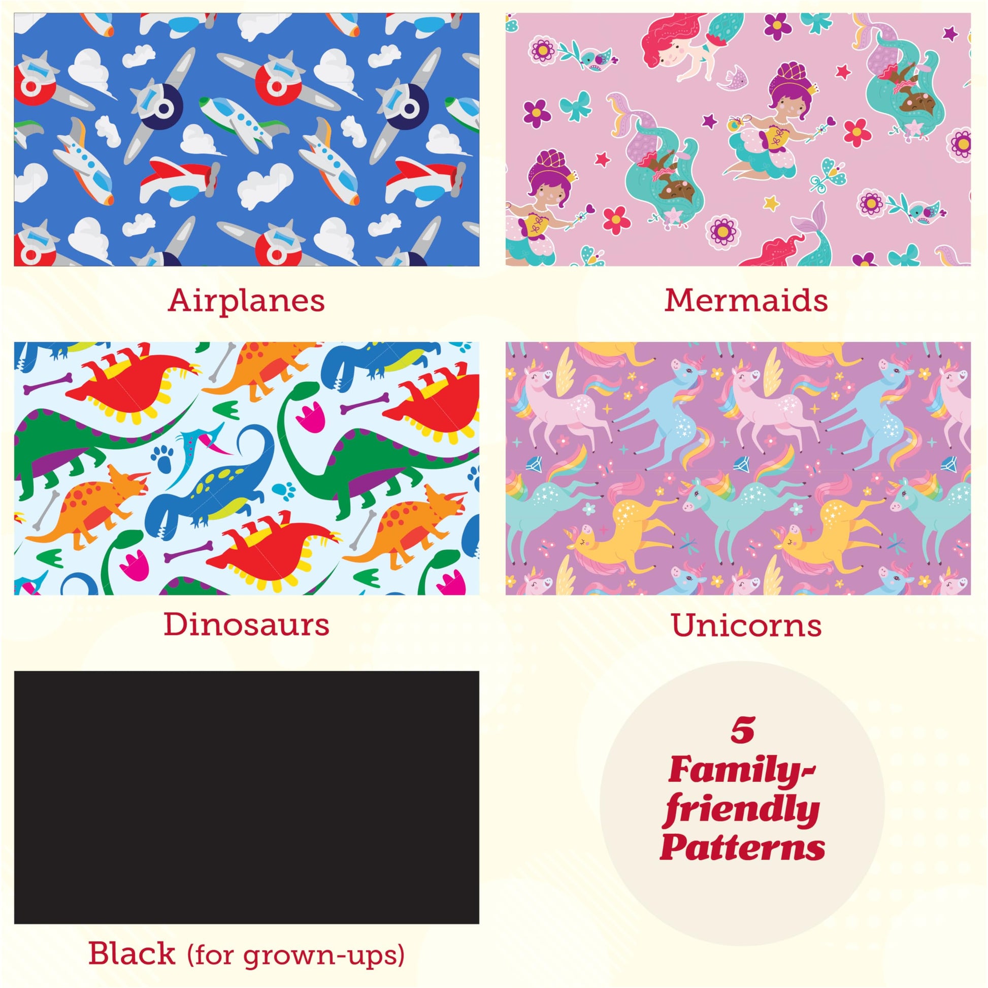 - Flying With Toddlers Must Haves: Choose from 5 cool unicorn-patterned designs. Easily fold or roll up the rectangular textile plane tray table cover for compact storage. When you're home, toss it in the gentle wash to keep it fresh for the next adventure