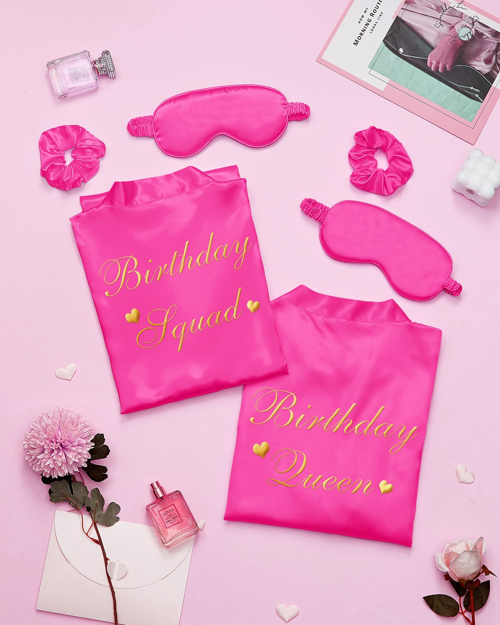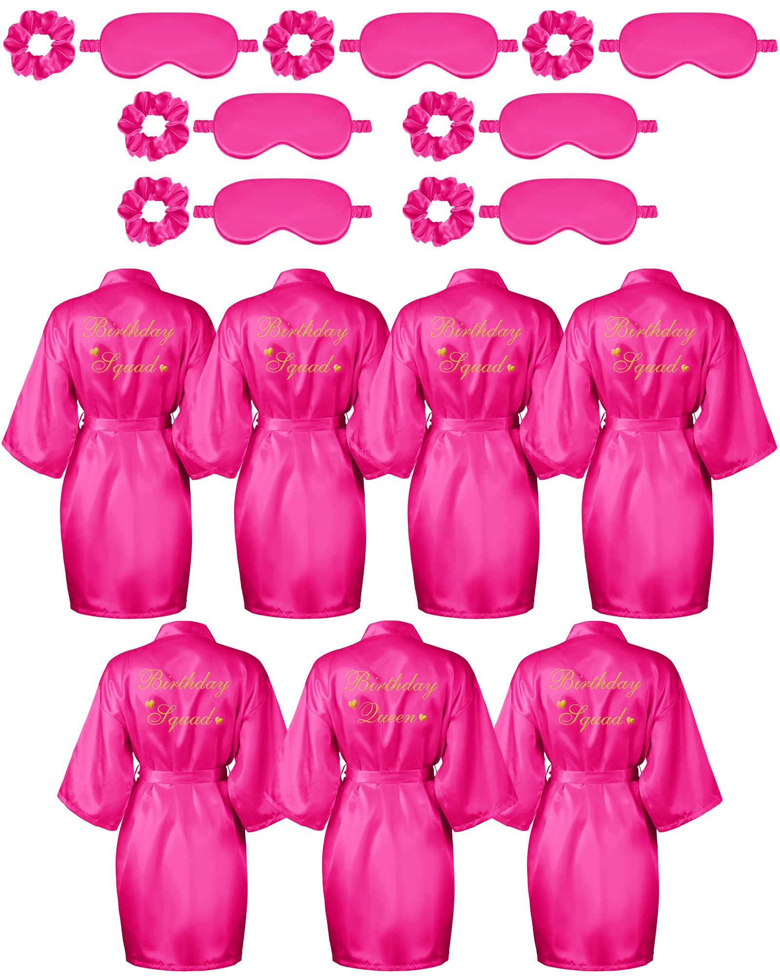 Neer 21 Pcs Women Birthday Party Robe Set Queen Squad Kimono Satin Bathrobes with Eye Mask and Scrunchie for Birthday (Rose Red)