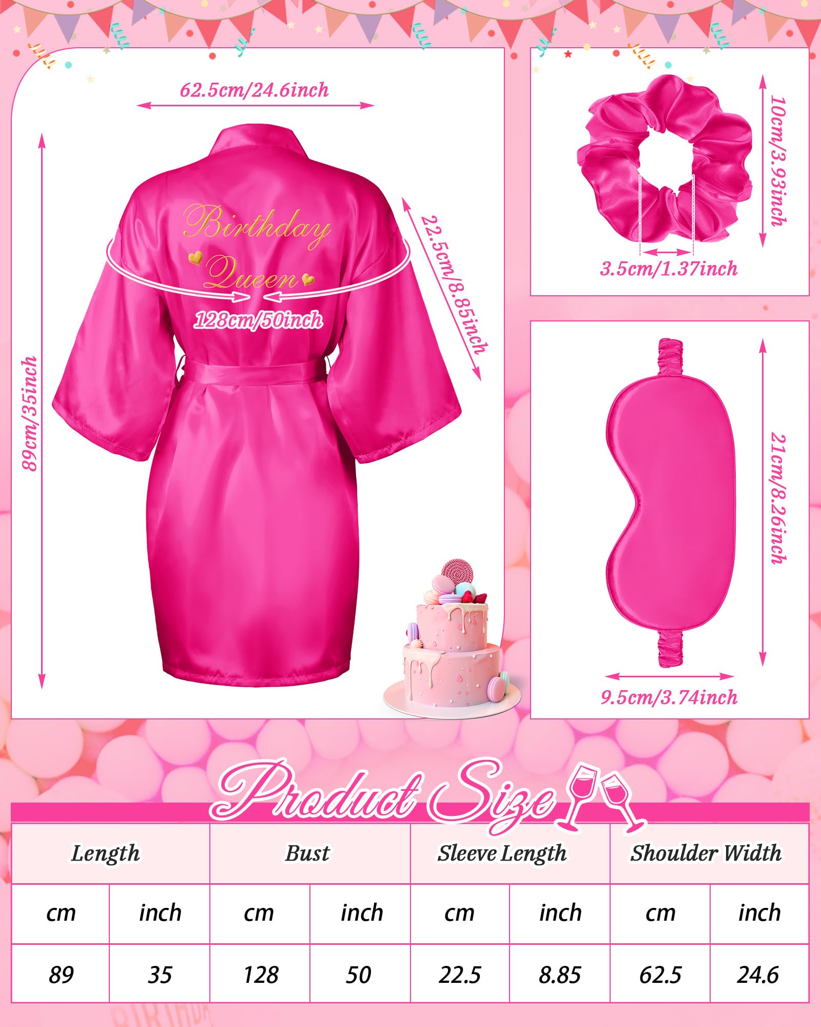 - Quality Material Selection: the birthday party robes, eye masks and scrunchies are all made of quality satin fabric, soft and skin friendly; The inside of the eye mask is filled with 180 grams of silk cotton, which will not cause much burden to your eyes in the sleeping