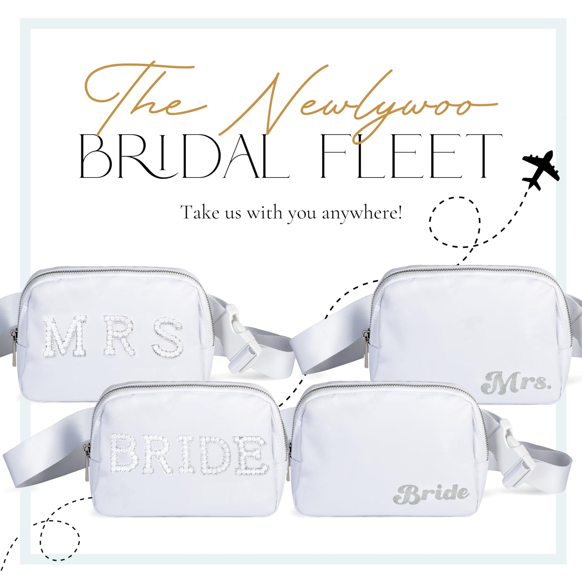 Newlywoo Pearl Bride Bag, White Fanny Pack - Complete your White Bride Bachelorette Outfit with our Cute Bride Belt Bag! A Gift for the Bride for all her Wedding Essentials and Bride Accessories!