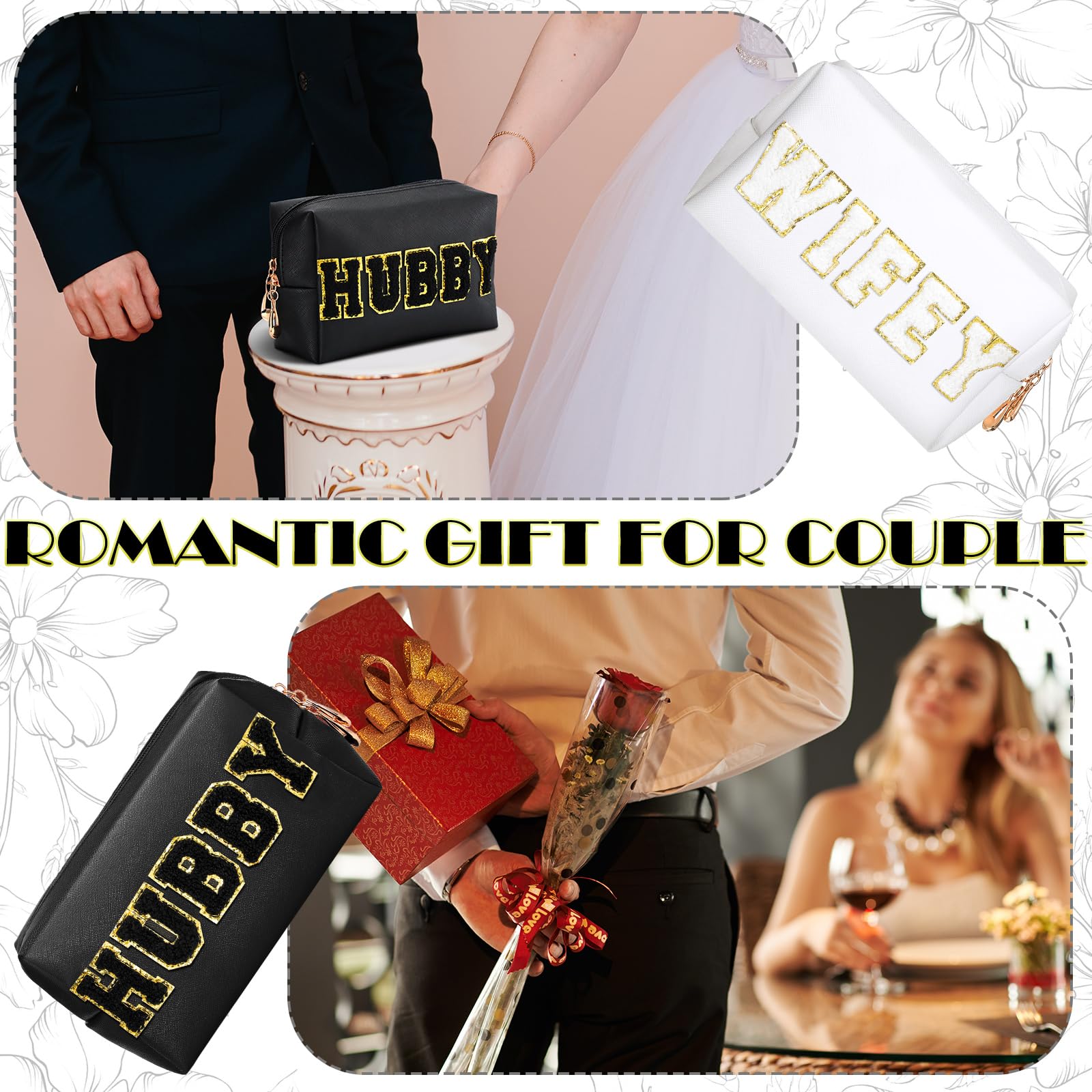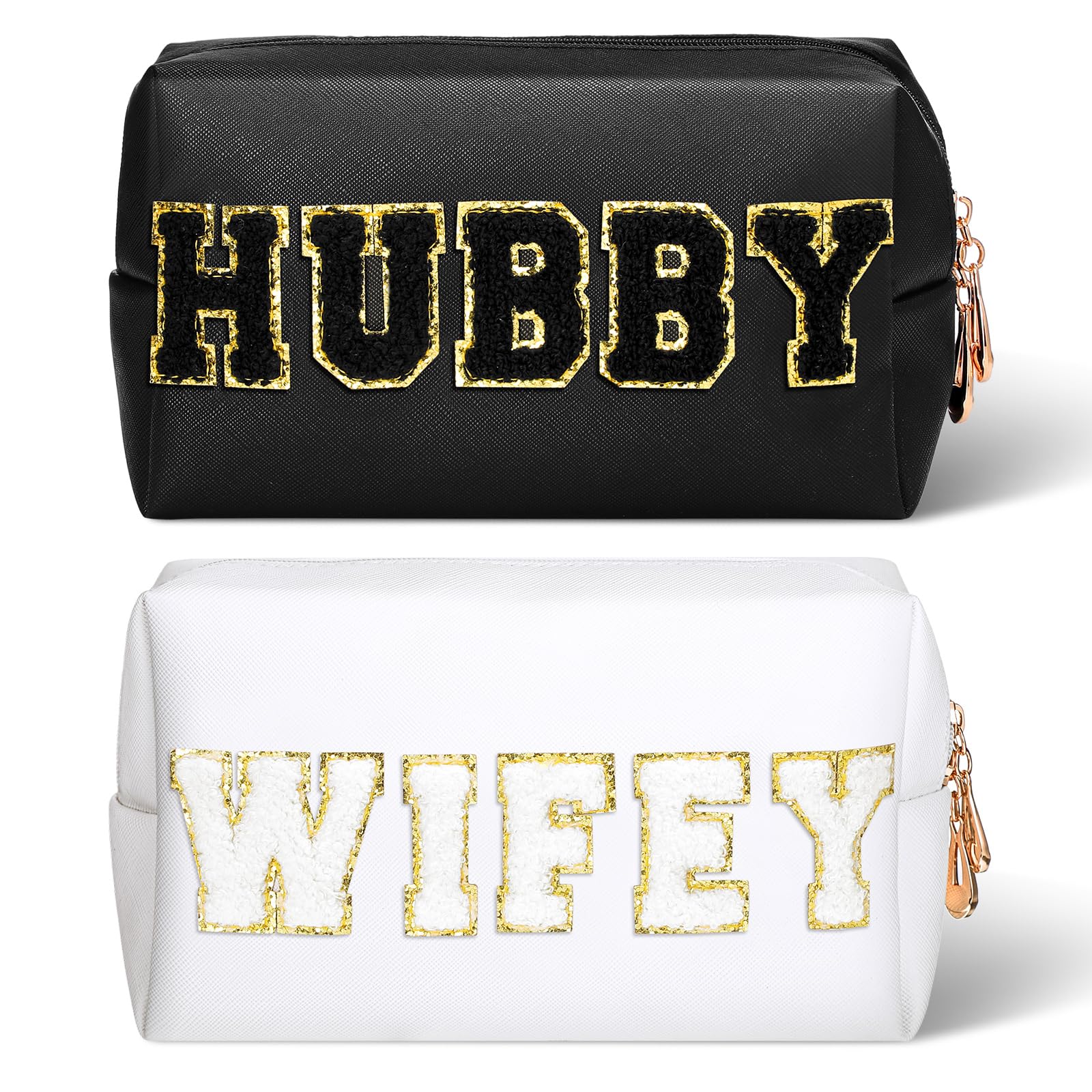 - Elegant Cosmetic Toiletry Bag: these cosmetic bags are designed with letter patches [WIFEY] and [HUBBY] on the front, 1 for each style, which can exude an elegant and noble atmosphere, making you the center of people's attention