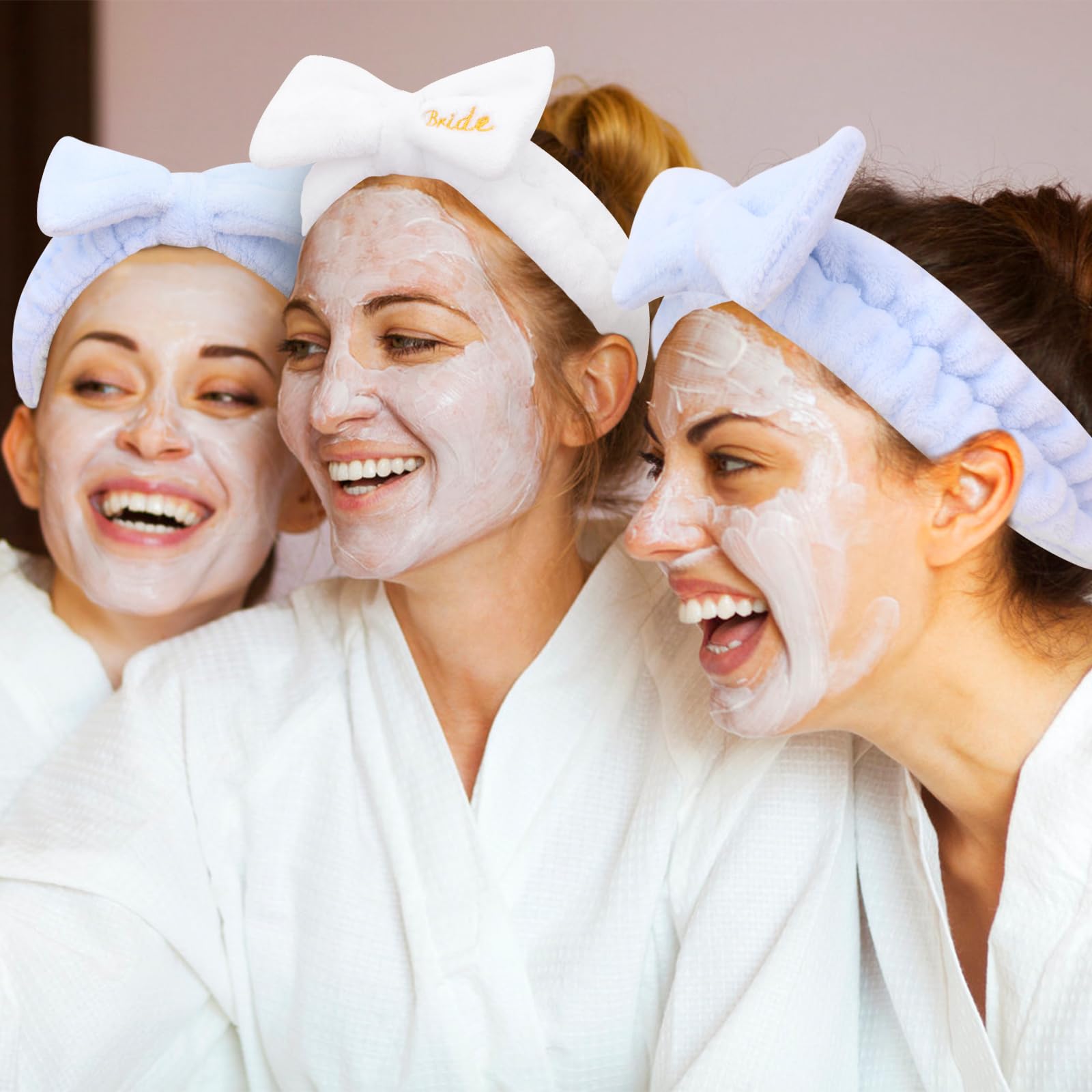 Semato 8 Pcs Bachelorette Party Favor Set Bride Spa Headband Bride Headband and Bridesmaid Headband Skincare Headbands for Women Cute Bow Head Bands Party Supplies (1 bride+ 7 blue)