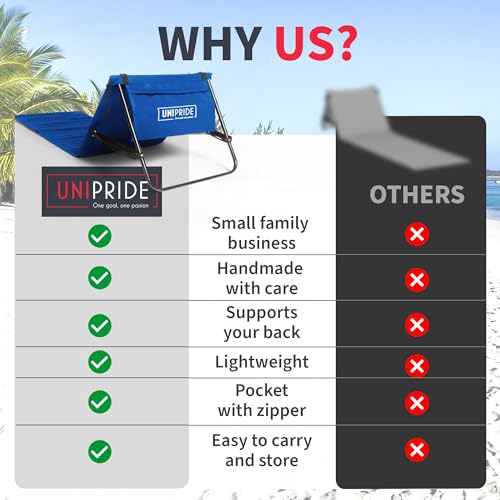 - šÆ THE ONE AND ONLY: Unipride beach chair is the ultimate beach lounger to enojy the sun on the beach or in your backyard. Founded by beach enthusiasts in 2019. We are dedicated to offer you sun soaking experience so you can take maximum from every moment.