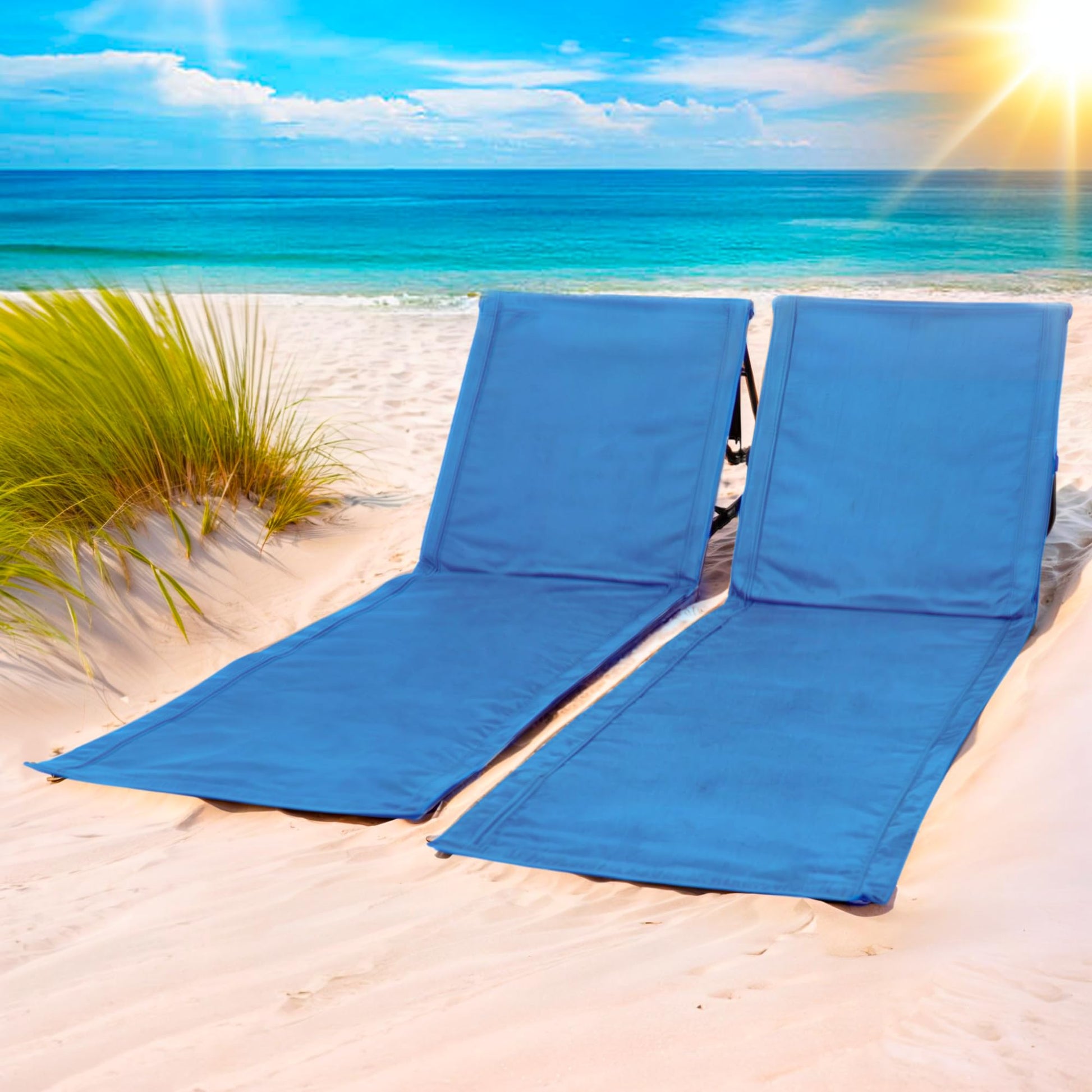 UNIPRIDE Lightweight Beach Chair for Adults (Set of 2) - Portable Beach Lounger I Ideal Tanning Mat for Sunbathing I Easy to Fold and Carry - Blue