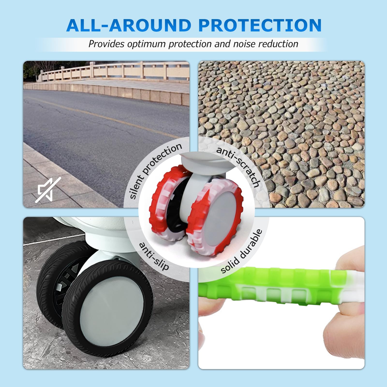 - 【Protect Luggage Wheels】This Suitcase Wheel Protector Cover has been upgraded to be thicker and more durable. Cement or gravel floors can effectively protect luggage wheels from scratches,wear,and damage from sharp objects, reducing noise and making it quieter